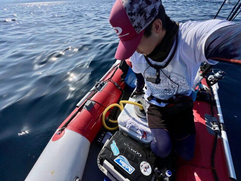 そして、ボートの空気が漏れているのでポンプで補充💪