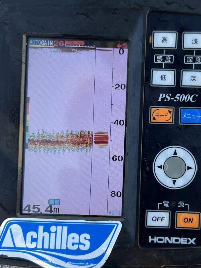 ジグ落としてボトム付近をフォールさせてると…ドカンとようやくバイト💥