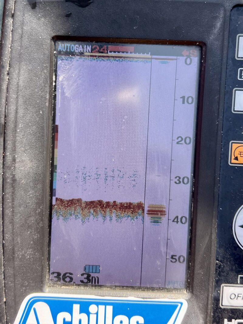 魚探の反応見ながら走って止まってまた走るの繰り返し